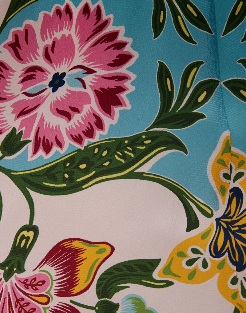 Enamórate de nuestro vestido estampado "Jamaica", la definición perfecta de la originalidad y una declaración de estilo en toda regla. Sus colores vibrantes y su estampado transmiten alegría, vivacidad y frescura.