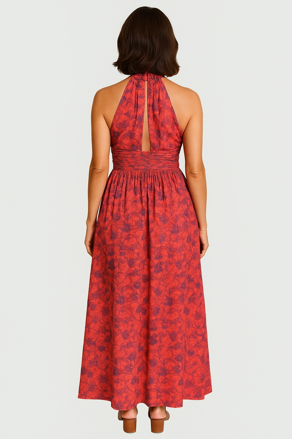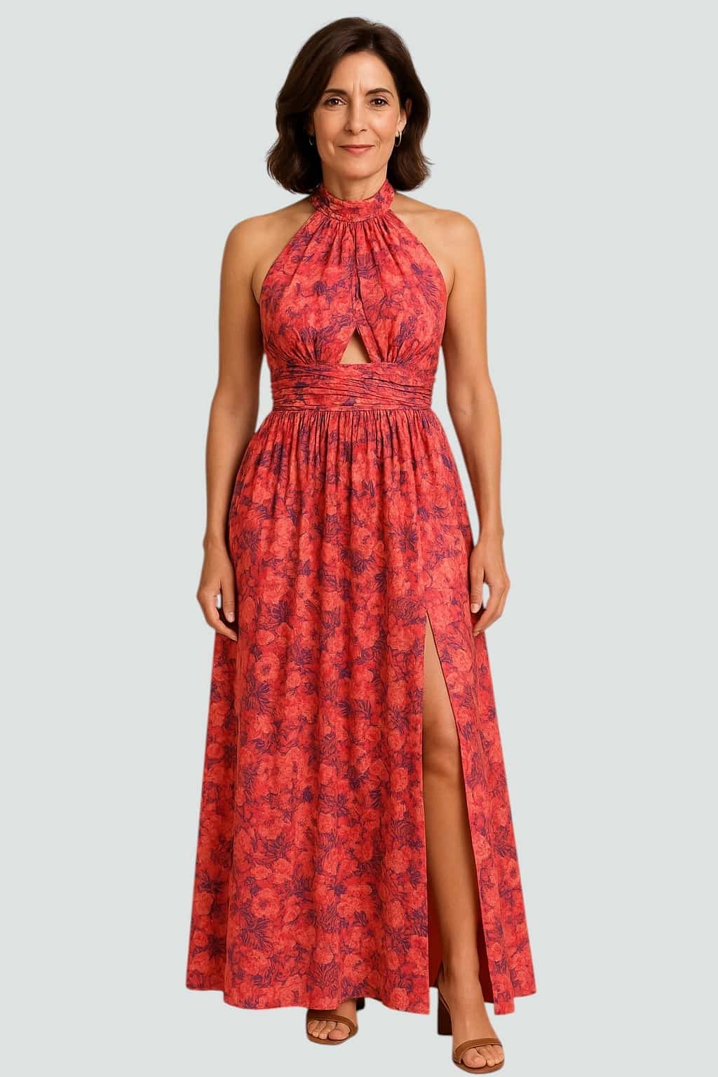 Enamórate de nuestro vestido "Maya", una prenda elegante y única que representa a la perfección tu estilo propio. Sus colores vibrantes y su estampado transmiten alegría y frescura, a la vez que enfatizan tu figura y te hacen brillar.