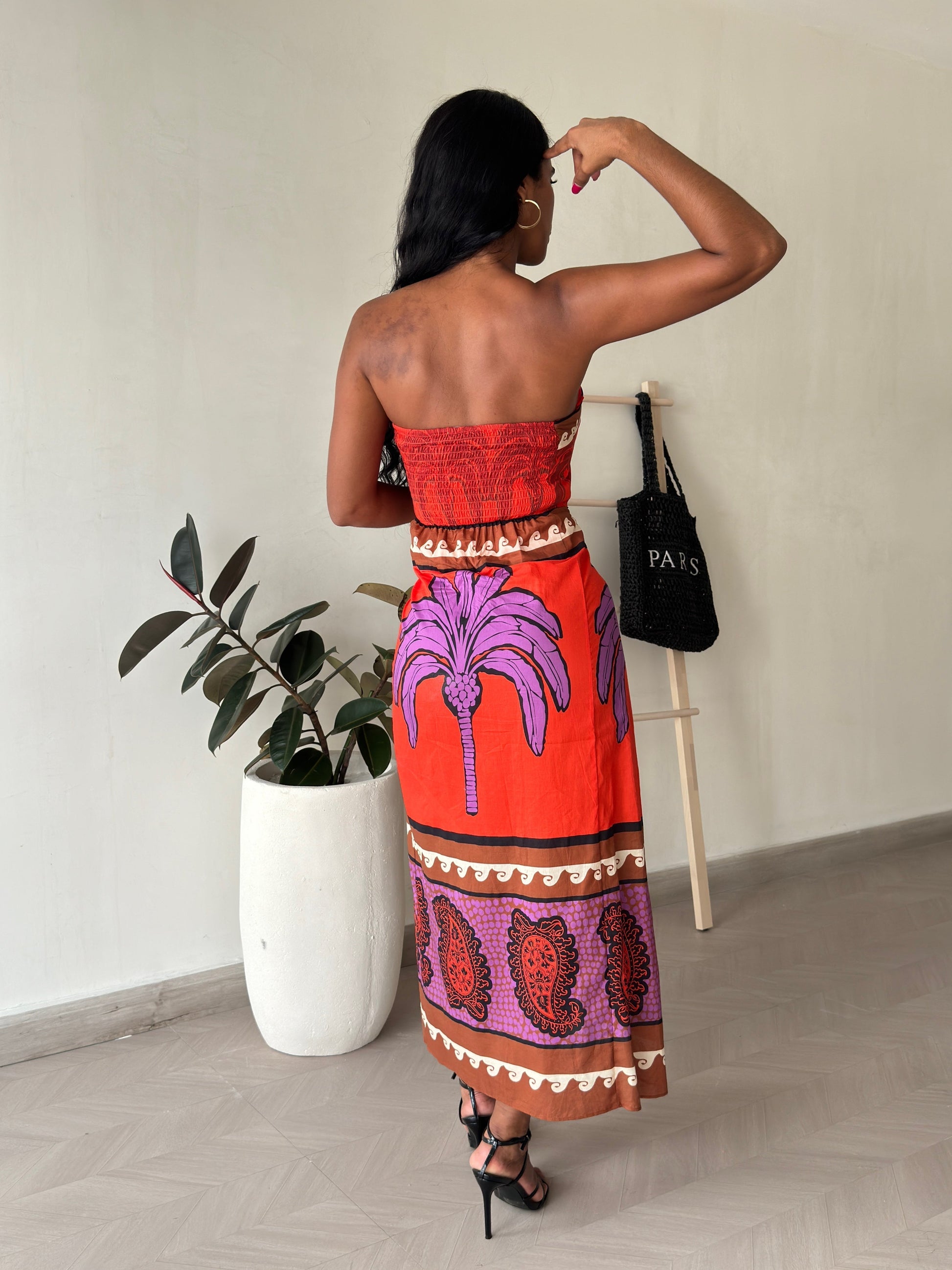 Enamórate de nuestro vestido largo sin mangas "Mulán", su estampado te hará lucir elegante sin perder ese toque informal. Este vestido cuenta con un diseño único con el que serás el centro de todas las miradas vayas donde vayas.